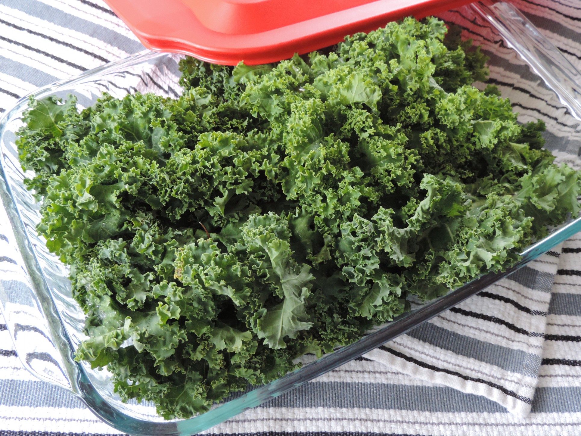 A 9×13 glass, baking dish with a plastic lid is a great size to store kale and chard.