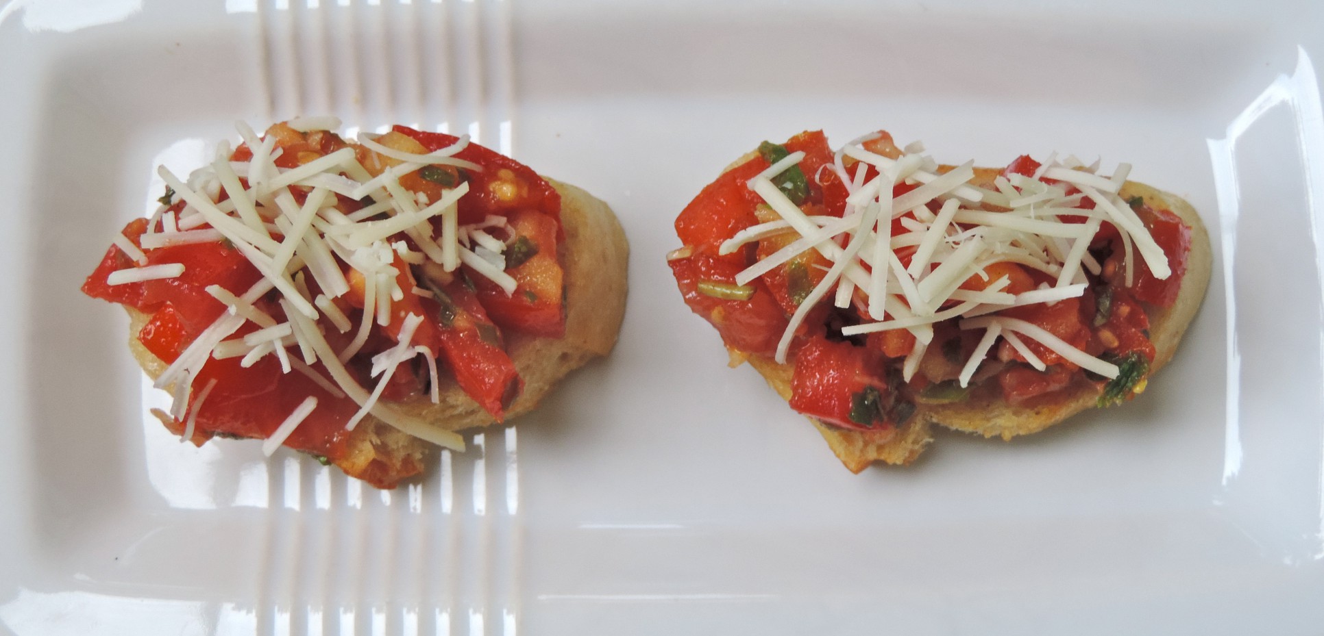– After bread is toasted and right before serving, pile on tomato mixture and top with Asiago cheese.